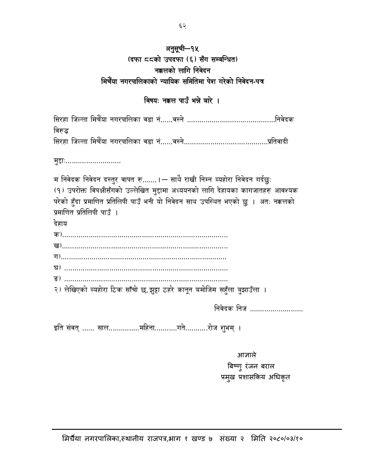 मिर्चैया नगरपालिकाको न्यायिक समिति समक्ष पेश गरेको लिखित जवाफ